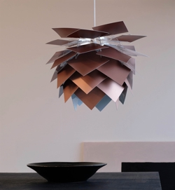 Dies ist eine Selbstmontage-Lampe, bei der Lampenständer, 40 Blätter für den Schirm, 3 Meter Stoffkabel und Deckenrosette enthalten sind. Die Deckenrosette passt zu geraden Decken und schrägen Decken mit einer Neigung von bis zu 45 Grad. Das Besondere an der Pendelleuchte ist, dass man, wenn man später einen anderen Ausdruck wünscht, ein anderes Set Schirme dazukaufen kann und damit den Ausdruck der Lampe vollständig ändern kann.