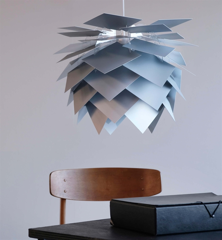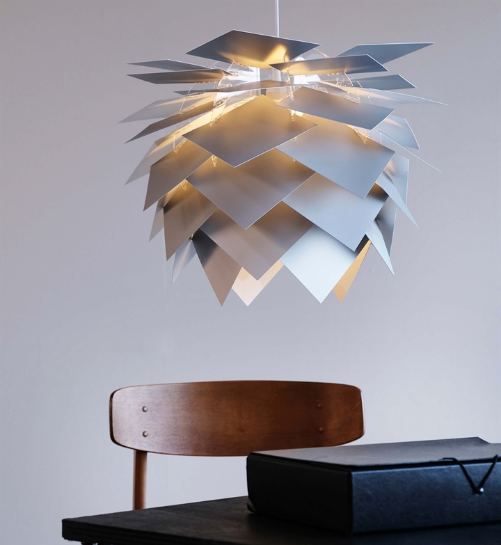 Die schöne Pendelleuchte Illumin mit Aluminium-Finish hat einen klassischen und stilvollen Ausdruck, der sich gut in viele Einrichtungsstile einfügt. Verwenden Sie die Pendelleuchte beispielsweise als elegante Beleuchtung über dem Esstisch.