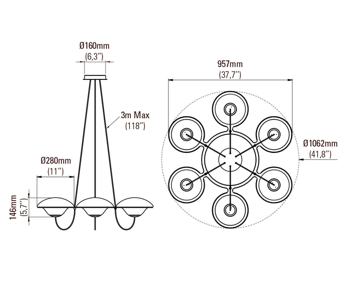 Masse: Ø106,2 cm, Schirme: Ø28 x H14,6 cm