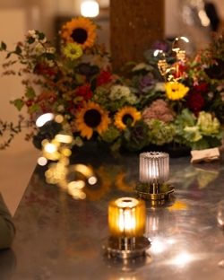 Die Batterielampe strahlt Nuancen von Gold und Silber aus, kombiniert mit weichen Schatten des Netzes, das das Licht umgibt. Sie verleiht jedem Raum eine einzigartige und magische Atmosphäre und macht die tragbare In The Sun zu einer idealen Wahl für den Schreibtisch, Couchtisch oder Nachttisch.