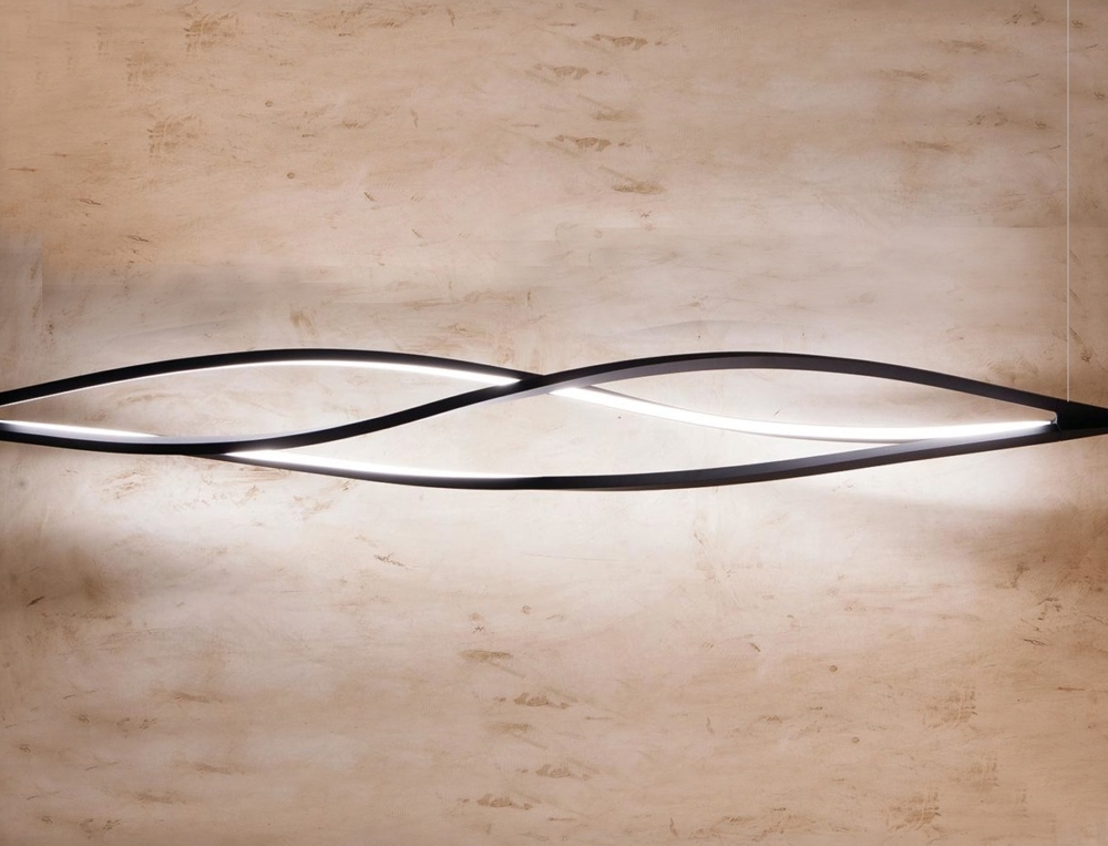 In the wind horizontal Pendelleuchte ist in den Farben: weiß, grau, goldfarben und schwarz erhältlich.