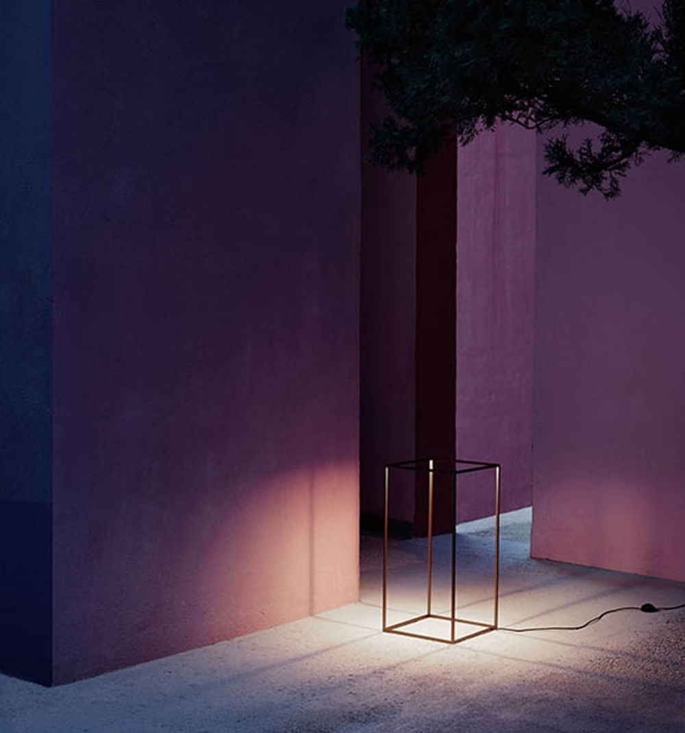 Besteht aus einem Metallrahmen. Auch als Innen-Stehleuchte erhältlich.