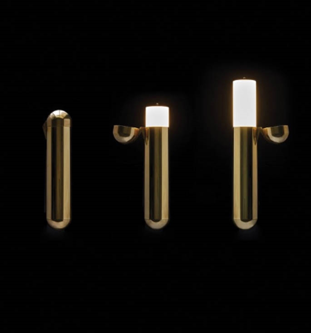 Die Wandleuchte hat keinen Schalter oder Dimmer, was bedeutet, dass man das Licht steuern kann, indem man das Leuchtrohr aus der Kapsel bis zur Mitte der Lampe zieht. Wenn man kein Licht möchte, kann die Kapsel auch geschlossen werden.