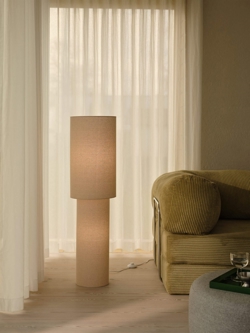Sowohl im Schirm als auch in der Basis der Stehlampe werden Leuchtmittel montiert. Die Leinenverkleidung der Lampe sorgt für ein weiches und diffuses Licht, das sich gleichmäßig im Raum verteilt, ohne grell zu wirken. Mit ihrem ruhigen und angenehmen Charakter ist Izara eine ideale Wahl für diejenigen, die stimmungsvolle Beleuchtung mit einem nordischen Ausdruck in die Einrichtung integrieren möchten.