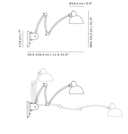 Maße: Schirm: Ø16,4 Basis: H17,8 cm Lampenarm: 29,3-105,4 cm