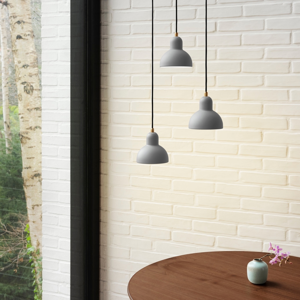 KAISER idell 6722-P Pendelleuchte, easy grey/mattes Messing – entworfen von Christian Dell für Fritz Hansen.