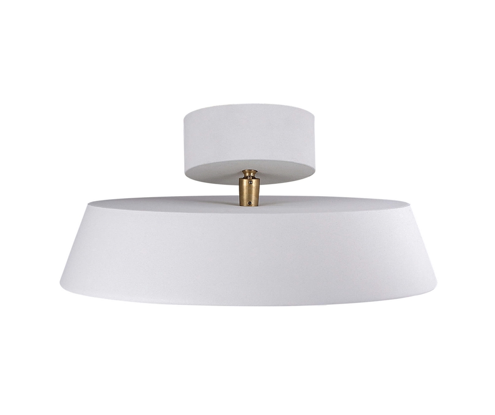 Kaito Dim ist in einer runden, modernen Form gestaltet. Das integrierte LED-Modul ist dimmbar und sorgt für ein weiches und diffuses Licht von der gleichmäßigen Oberfläche. Das Design der Lampe ermöglicht es, das Licht nach Bedarf auszurichten, da die Deckenleuchte um 35 Grad geneigt und um 350 Grad gedreht werden kann.