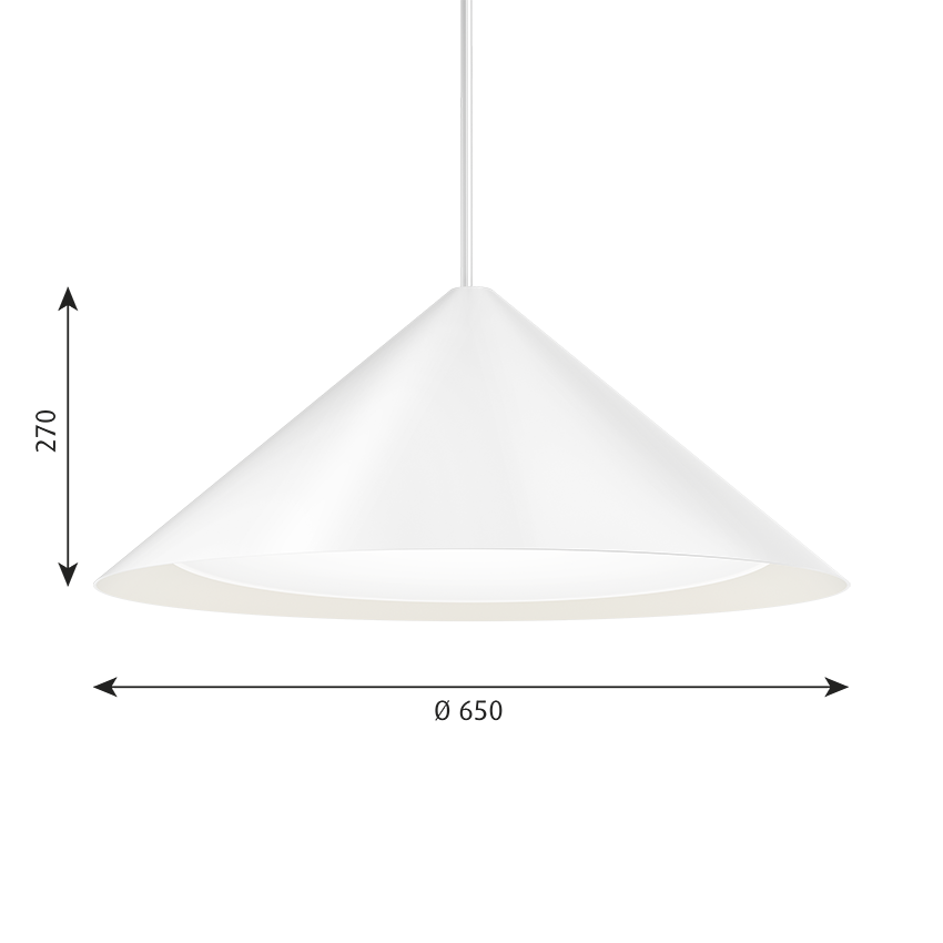 Keglen hat, wie der Name schon sagt, eine Kegelform, die einfach, aber dennoch unglaublich elegant ist. Die Lampe verfügt über einen eingebauten, gebogenen Opaleinsatz, der für ein angenehmes und blendfreies nach unten gerichtetes Licht sorgt.