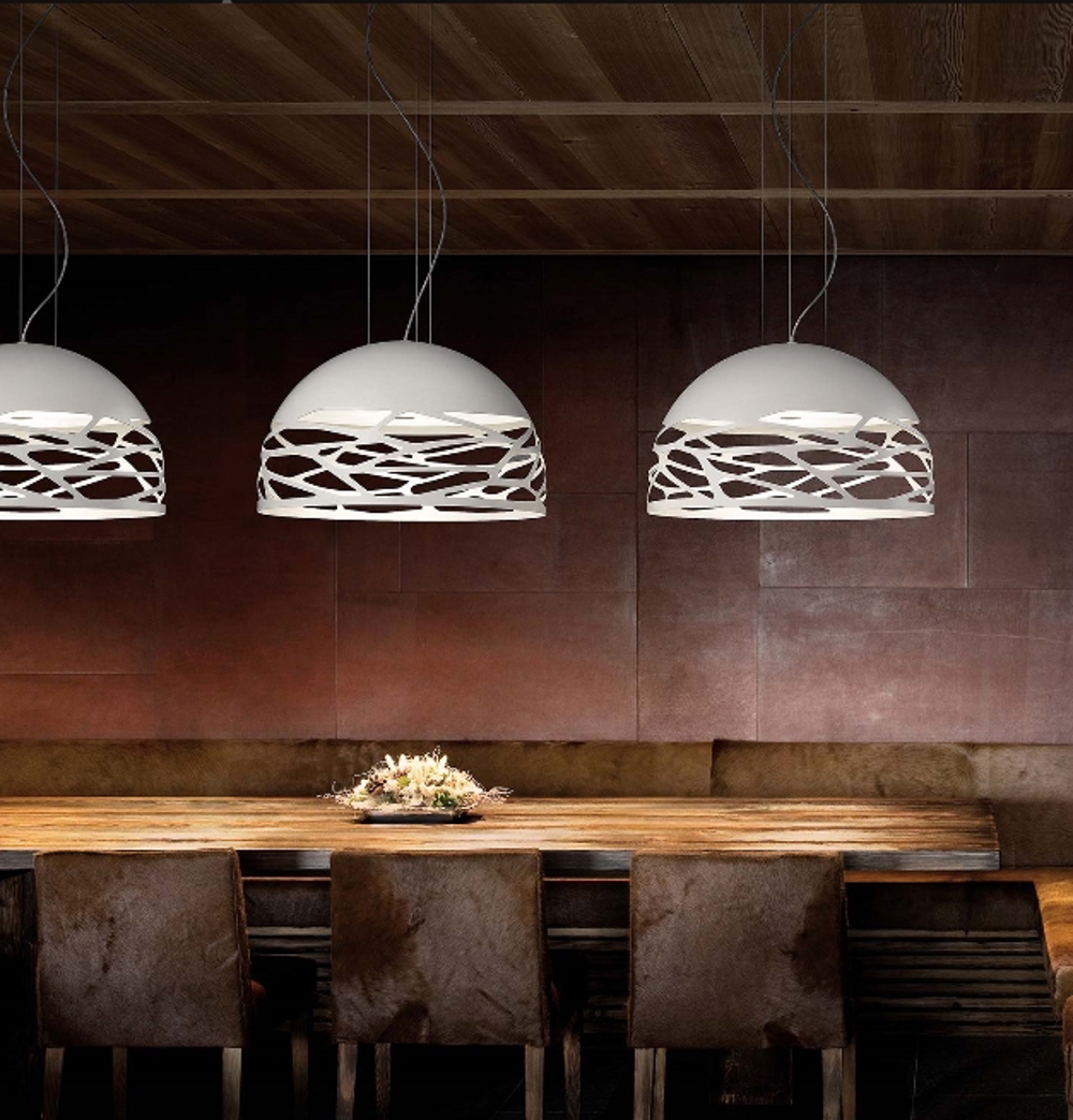 Der lasergeschnittene Schirm der Kelly Dome Pendelleuchte lässt das Licht strömen und erzeugt ein schönes Spiel im Raum. Die Pendelleuchte bietet ein angenehmes Licht und kann daher ideal über dem Esstisch oder im Wohnzimmer platziert werden.