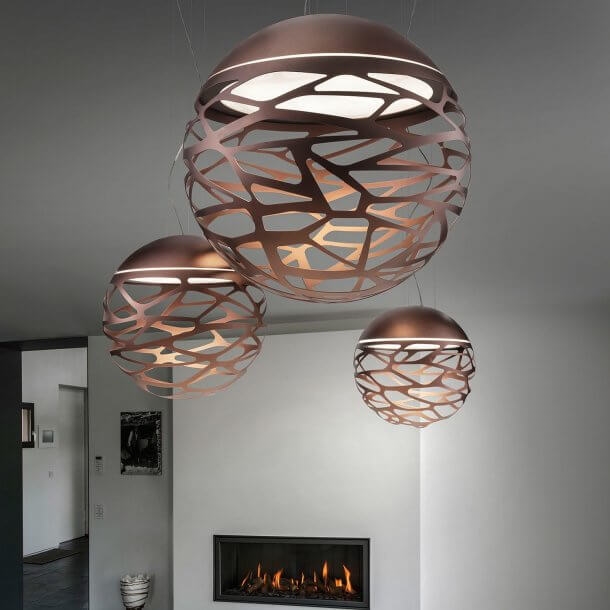 Kelly Sphere hat ein wunderschönes Design, das aus einem lasergeschnittenen Schirm besteht, der ein einzigartiges Licht und ein schönes Spiel im Raum erzeugt.