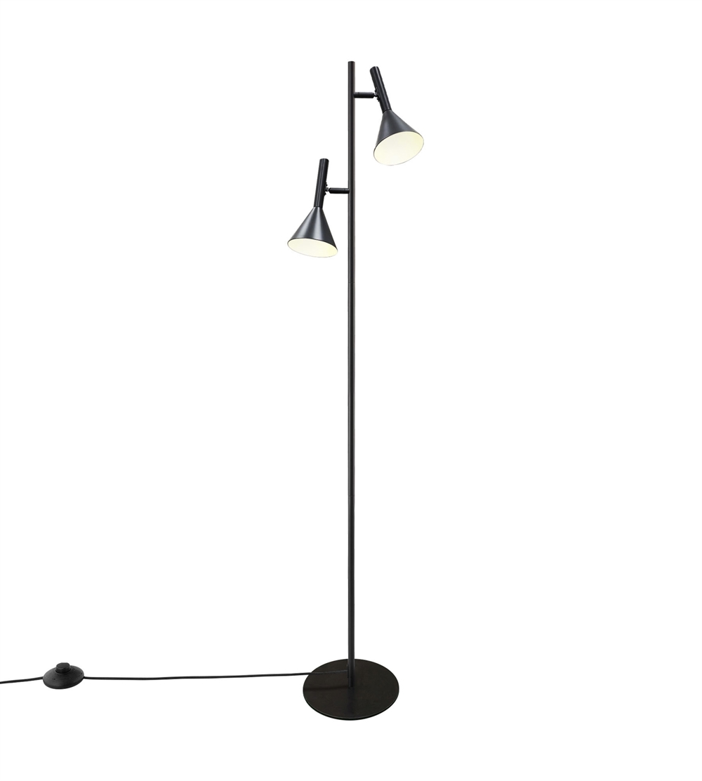 Die Stehleuchte Kelvis ist eine stilvolle und moderne Leuchte, die minimalistisches nordisches Design mit praktischer Funktionalität verbindet. Das schlanke Profil und das elegante schwarze Finish machen sie zu einem dekorativen Element in der Einrichtung – perfekt für Wohnzimmer, Schlafzimmer oder Büro. Die zwei Schirme sind verstellbar und lassen sich um 90° neigen und um 350° drehen, sodass die Lichtrichtung je nach Bedarf gezielt ausgerichtet werden kann. Eine gute Wahl als Leselampe oder Arbeitslicht.