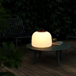 Kettle ist eine schöne Batterielampe, bei der Funktionalität im Vordergrund steht. Es wird austauschbares Zubehör mitgeliefert, sodass es möglich ist, die Art von Lampe zu erhalten, die den eigenen Bedürfnissen entspricht. Mit der Lampe wird ein Seil geliefert, das es ermöglicht, die Batterielampe im Garten aufzuhängen, um eine gemütliche Beleuchtung zu schaffen. Es gibt auch einen Spieß oder ein Stativ, sodass die Lampe als Tischlampe oder Stehlampe fungieren kann. Mit ihren runden und weichen Formen verleiht die Lampe einen ruhigen Ausdruck, wobei der diffuse Schirm ein sanftes Licht spendet.