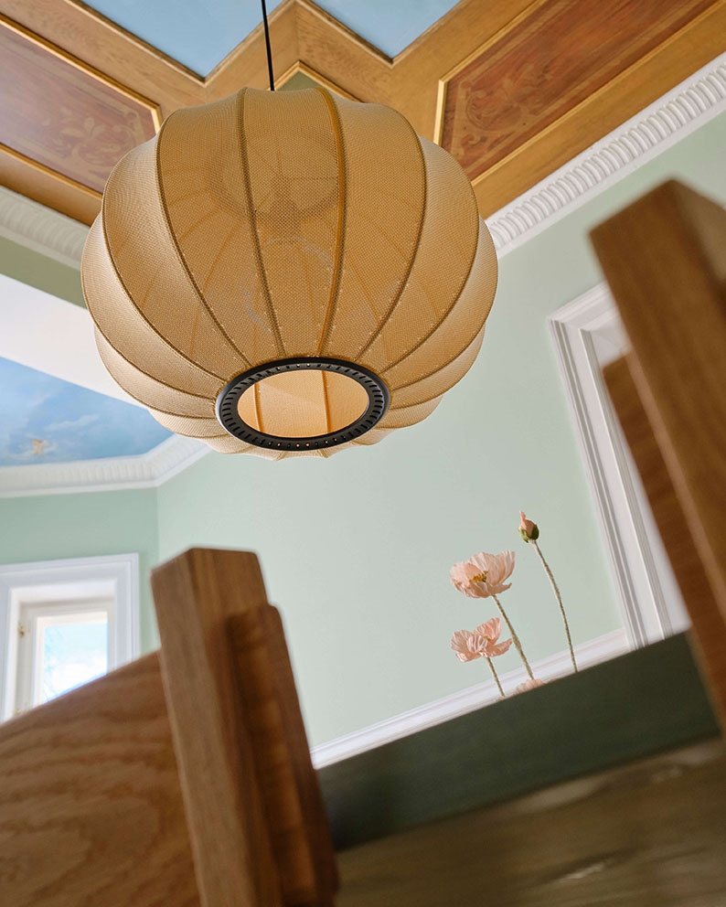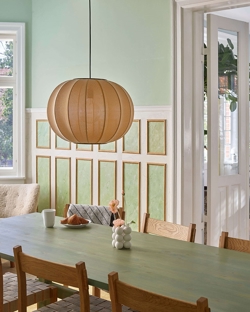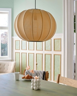 Die Pendelleuchte verfügt über eine E27-Fassung für eine Glühbirne und ist auch mit integrierter LED-Lichtquelle erhältlich. Die Lampenserie umfasst Pendelleuchten, Stehleuchten, Wandleuchten und Deckenleuchten.