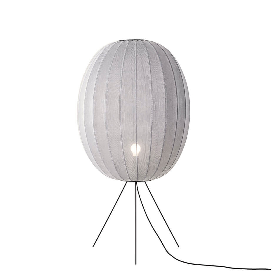 Die Knit-Wit Stehleuchte ist in mehreren Größen und Farben erhältlich. Die Lampenserie umfasst Pendelleuchten, Stehleuchten, Wandleuchten und Deckenleuchten.