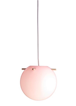 Frandsen Koi Pendelleuchte Ø25, opal rosa mit Stäben aus Messing - entworfen von Jonas Birkebæk Poulsen
