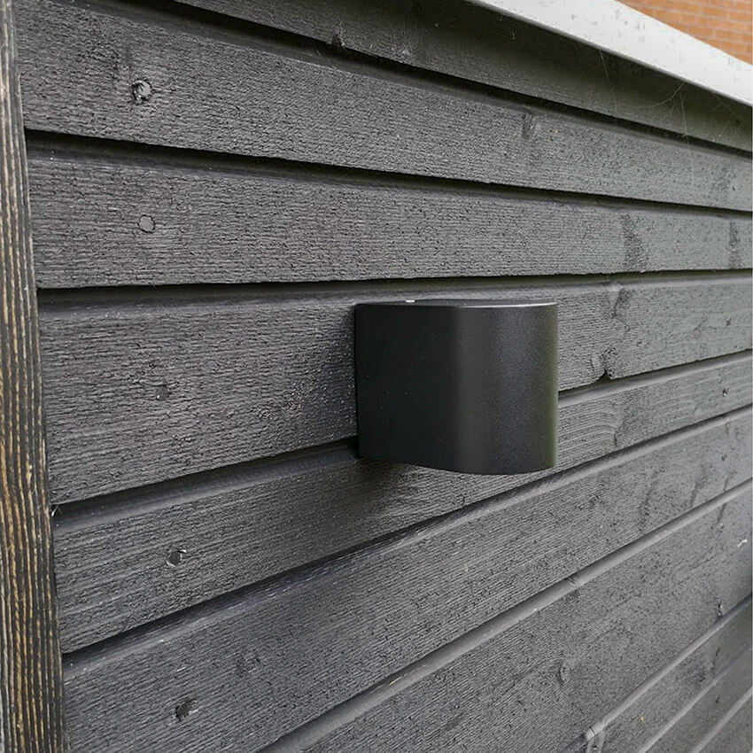 wandleuchte ist aus Aluminium gefertigt und hat eine schwarze Oberfläche aus rostfreiem Stahl.