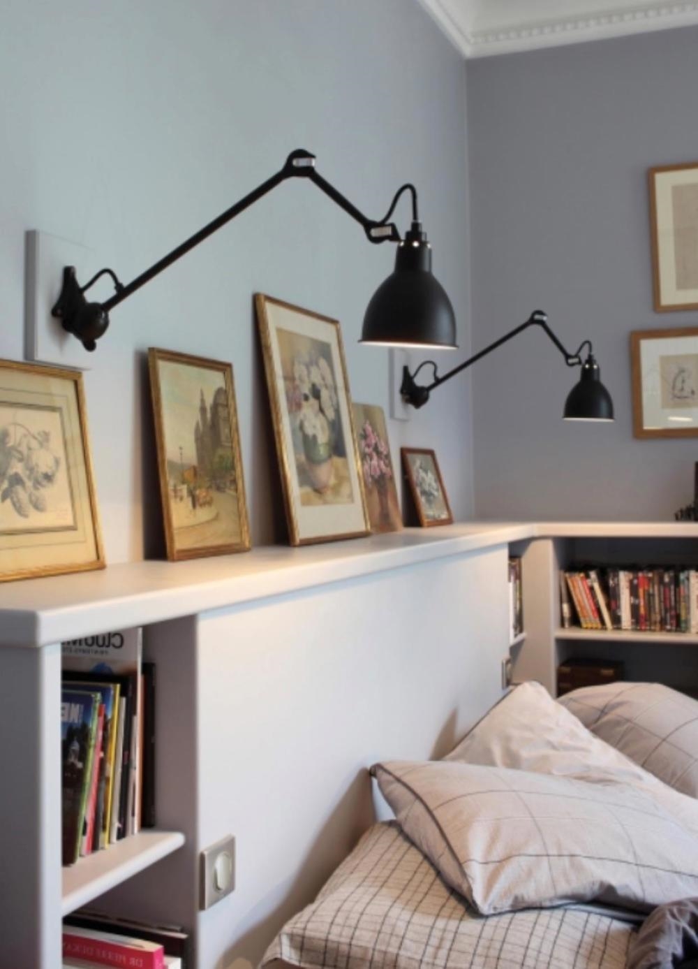 Lampe Gras No. 222 ist eine spannende und außergewöhnliche Wandleuchte mit unglaublich vielen Anwendungsmöglichkeiten. Die Lampe mit den starken Kugelgelenken kann in unzählige Winkel gedreht werden und kann sowohl als Up-Light oder als Leselampe am Bett oder Sofa verwendet werden, oder an der Decke montiert als Galerieleuchte dienen.