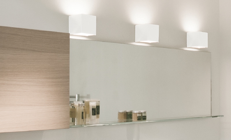 Die Laser Cube Wandleuchte ist eine naheliegende Wahl im Eingangsbereich oder Flur, aber auch an der Wand im Badezimmer.