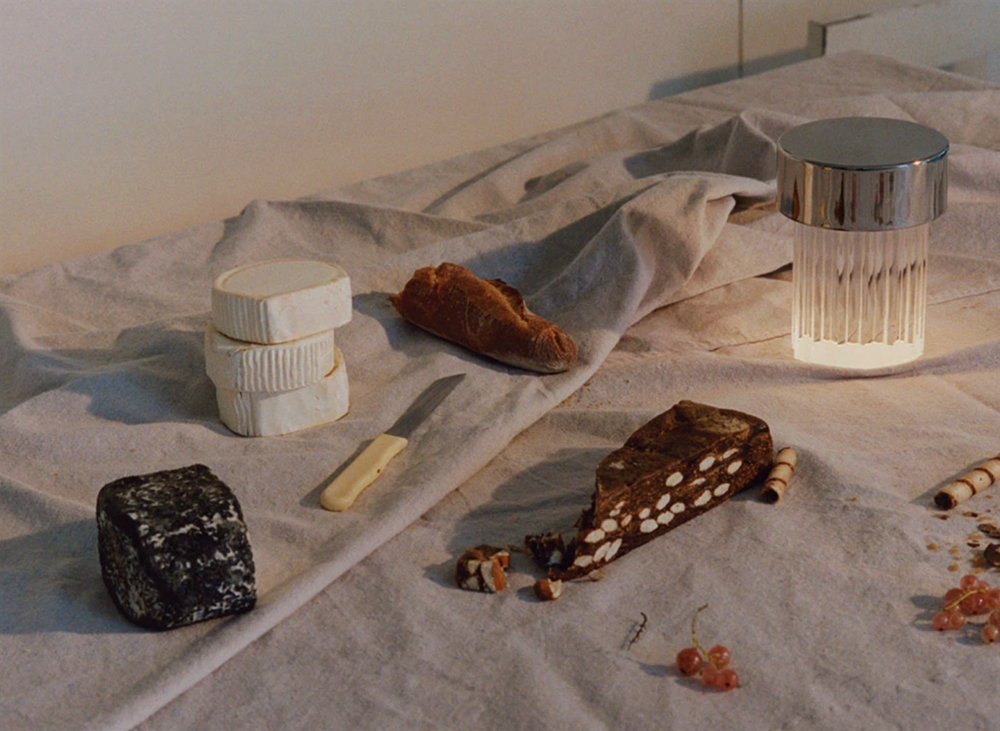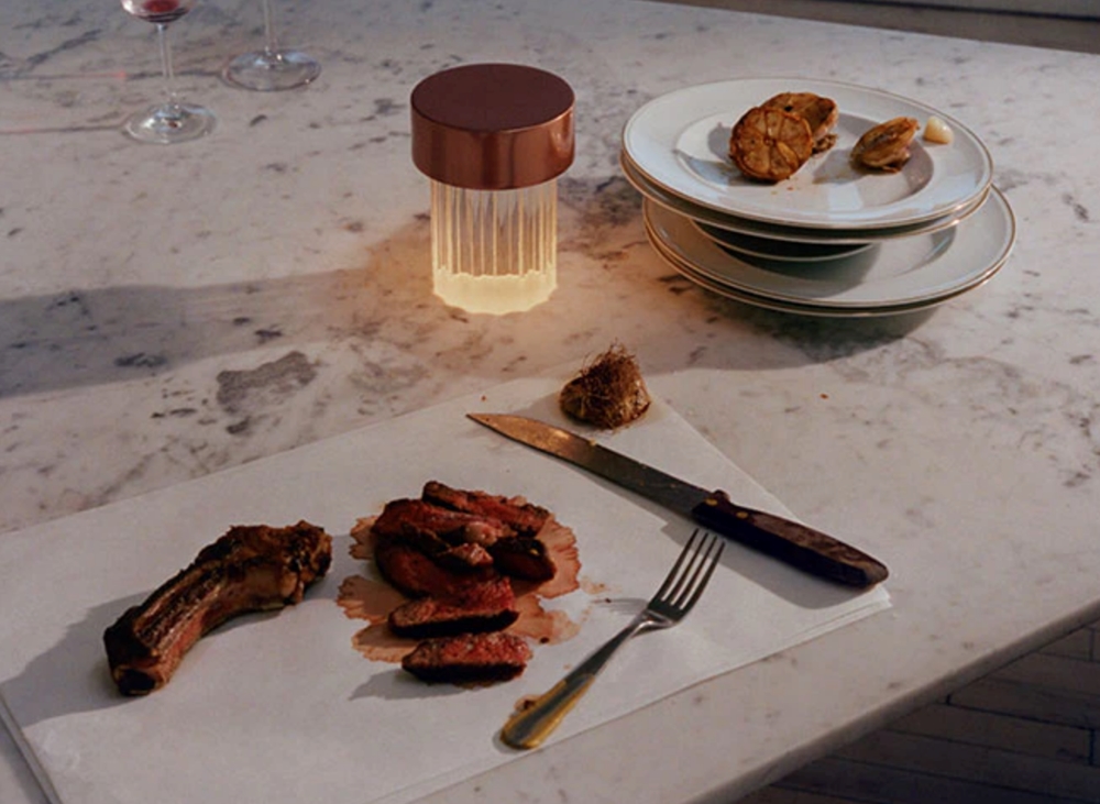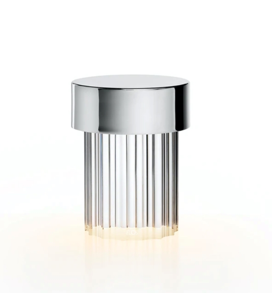 Flos Last Order Akkulampe / Tischlampe geriffelt, Edelstahl - entworfen von Michael Anastassiades.