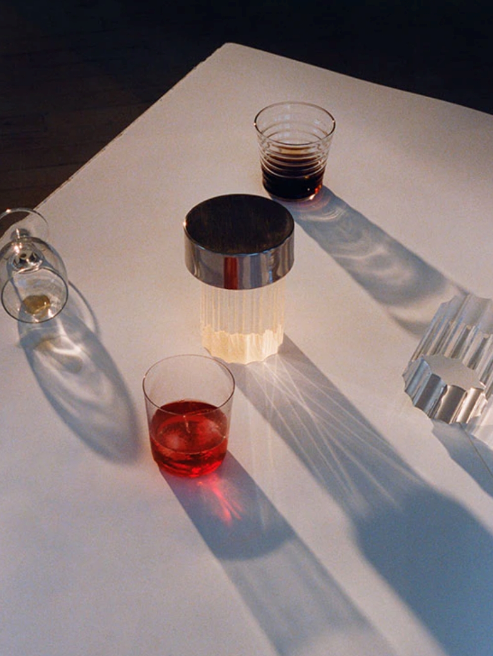 Flos Last Order ist eine wiederaufladbare Tischlampe, die das Licht durch eine transparente, massive Glasbasis abstrahlt, deren Form auf die architektonische Typologie der antiken Säule verweist. Die Abdeckung ist in einer Kombination aus verschiedenen Metall- und Farboberflächen erhältlich: Edelstahl, Messing, satiniertes Kupfer oder grüne Opalbeschichtung