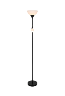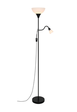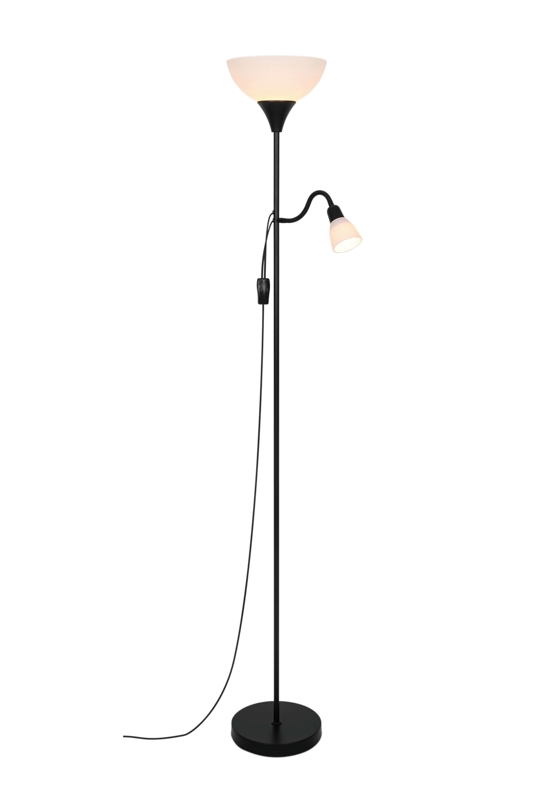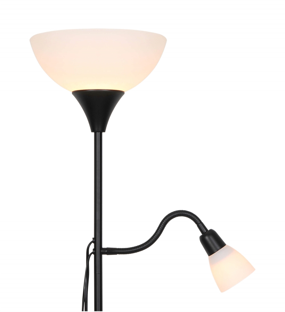 Die Stehlampe Lauria hat einen großen Schirm mit Uplight an der Oberseite und ein praktisches, kleineres und flexibles Leselicht an der Seite des Ständers. Separate Schalter ermöglichen es, die Lichtquellen einzeln oder gleichzeitig einzuschalten.
