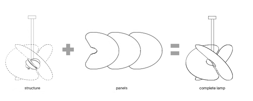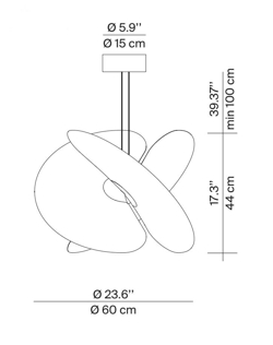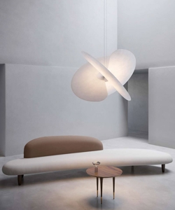 Der Levante Kronleuchter beeindruckt mit einem Design, das an einen schwebenden Organismus erinnert. Der Kronleuchter eignet sich perfekt für Wohnbereiche, wo er ein angenehmes, gleichmäßiges Licht verbreitet. Die drei dünnen Flügel sind magnetisch am Kern der Aufhängung befestigt und bilden zusammen den Schirm, der im Design an Reispapier erinnert.