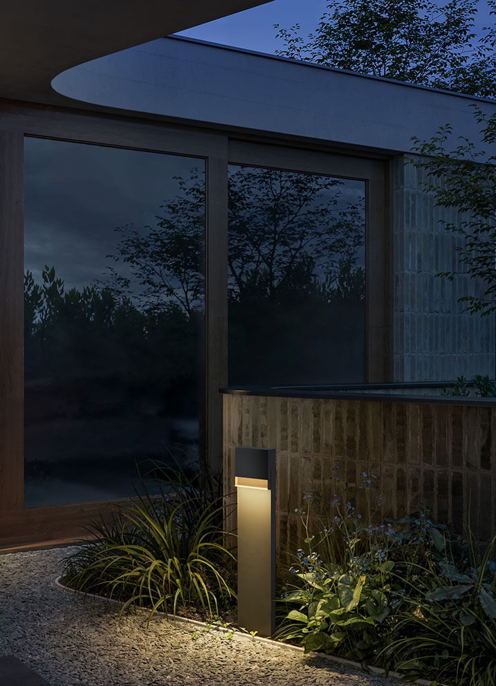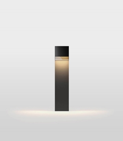 Der Außenpoller Li.4 besticht durch sein elegantes Design aus druckgegossenem Aluminium und ist schwarz pulverbeschichtet mit einem Frontstreifen aus rauchfarbenem Glas. Der Poller fügt sich mit seinem dezenten Ausdruck perfekt in Eingangsbereiche, Einfahrten und andere Außenbereiche ein. Die elegante Außenleuchte verfügt über einen integrierten Reflektor, der das Hauptlicht in eine vertikal nach unten gerichtete Richtung bündelt.