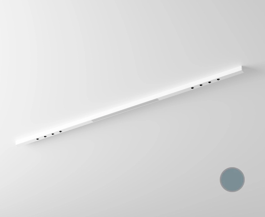 Die Leuchte Linto Plus NT I.20 in dieser blaugrauen Variante ist eine elegante Beleuchtungslösung mit einer zentralen Lichtquelle und zweimal 4 integrierten Linsen, die Blendung effektiv reduzieren und ein angenehmes Lichtumfeld schaffen. Die schlanke und dezente Form der Leuchte macht sie besonders geeignet für die Montage unter Schränken oder Regalen in modernen und minimalistischen Einrichtungen, wo Ästhetik und Funktion Hand in Hand gehen sollen.