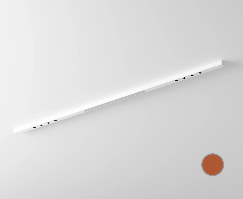 Die Leuchte Linto Plus NT I.20 in dieser rotbraunen Variante ist eine elegante Beleuchtungslösung mit einer zentralen Lichtquelle und zweimal 4 integrierten Linsen, die Blendung effektiv reduzieren und eine angenehme Lichtumgebung schaffen. Die schlanke und dezente Form der Leuchte macht sie besonders geeignet für die Montage unter Schränken oder Regalen in modernen und minimalistischen Einrichtungen, wo Ästhetik und Funktion Hand in Hand gehen sollen.