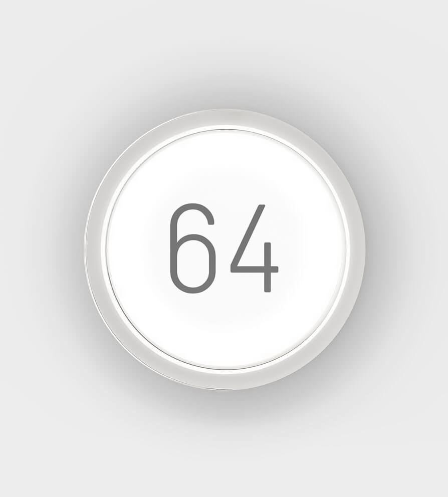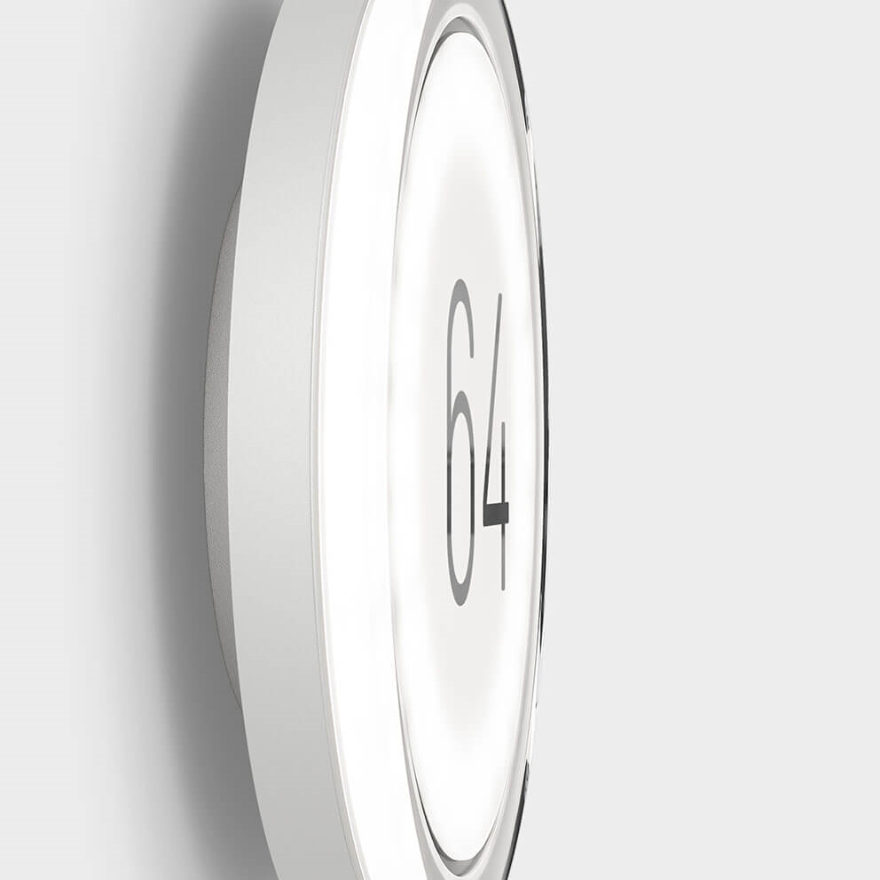 Lisc Number ist in den Farben Anthrazit und pure white erhältlich. Die Leuchte wird mit der gewünschten Hausnummer in grauer Folie geliefert. Die Hausnummer kann bis zu drei Ziffern umfassen und ist leicht lesbar. Lisc ist auch ohne Hausnummer zur Montage an Wand oder Decke erhältlich.