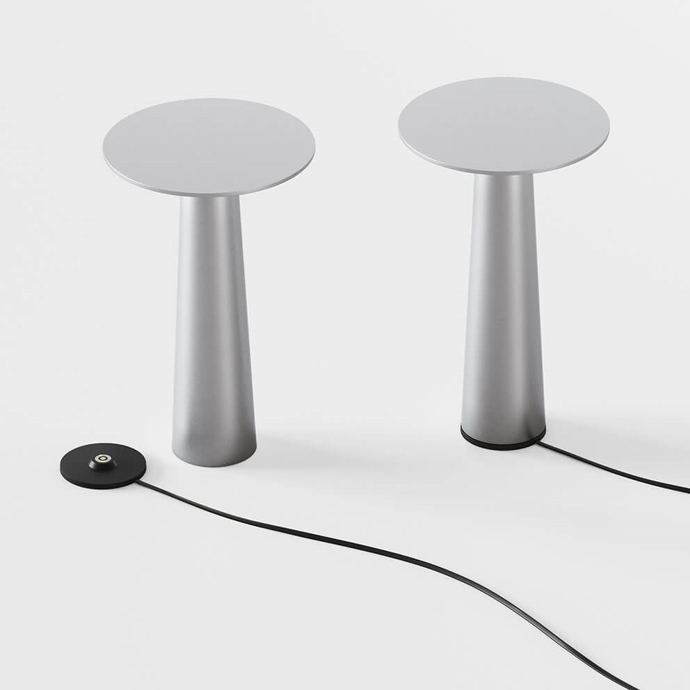 Die beliebte Akkuleuchte Lix mit silberner Oberfläche ist leicht mitzunehmen und kann mit einer integrierten, dimmbaren LED-Lichtquelle von warmweiß bei 2700K bis zum gemütlichen Kerzenschein bei 1800K angepasst werden. Die tragbare Tischleuchte kann je nach gewählter Dimmung zwischen 5 und 48 Stunden leuchten, bevor sie auf die mitgelieferte Ladestation gestellt und wieder aufgeladen werden muss.