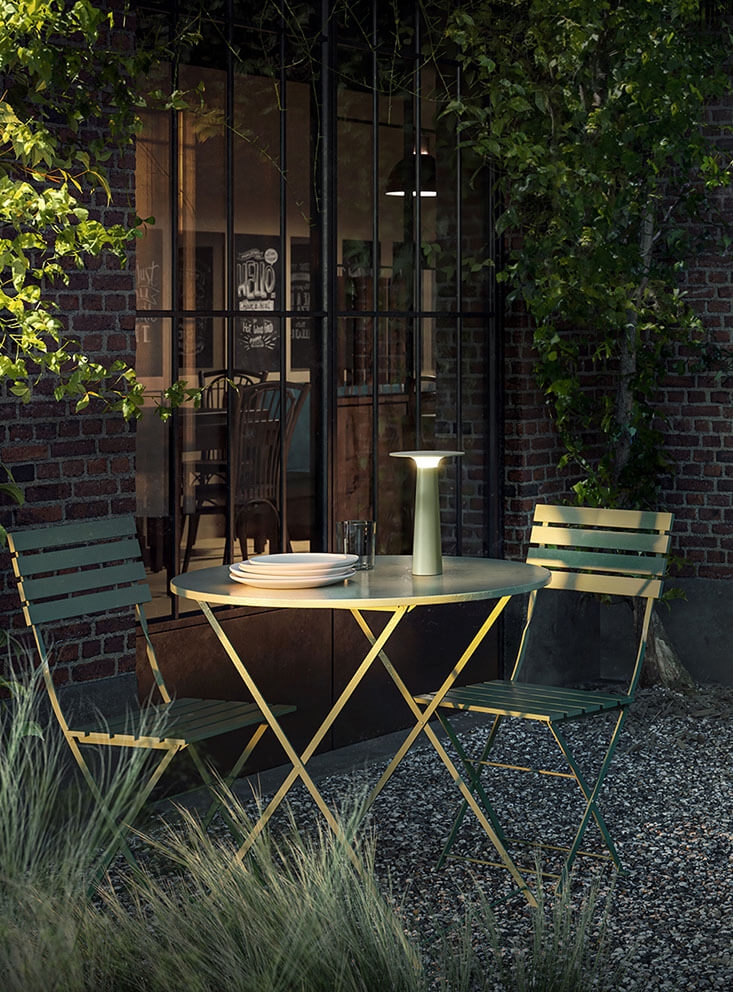Die Tischleuchte Lix ist in verschiedenen Ausführungen erhältlich, von denen die meisten sowohl für den Innen- als auch den Außenbereich geeignet sind. Die Varianten in Messing, Chrom und Dunkelchrom werden nur für den Innenbereich empfohlen. Die Serie umfasst auch die kleinere Variante Lix mini.