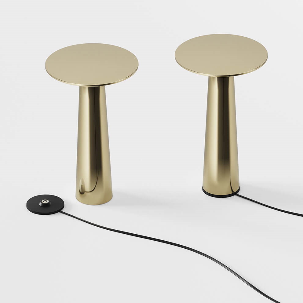 IP44.de Lix Akkuleuchte/Tischleuchte, Messing - entworfen von Klaus Nolting