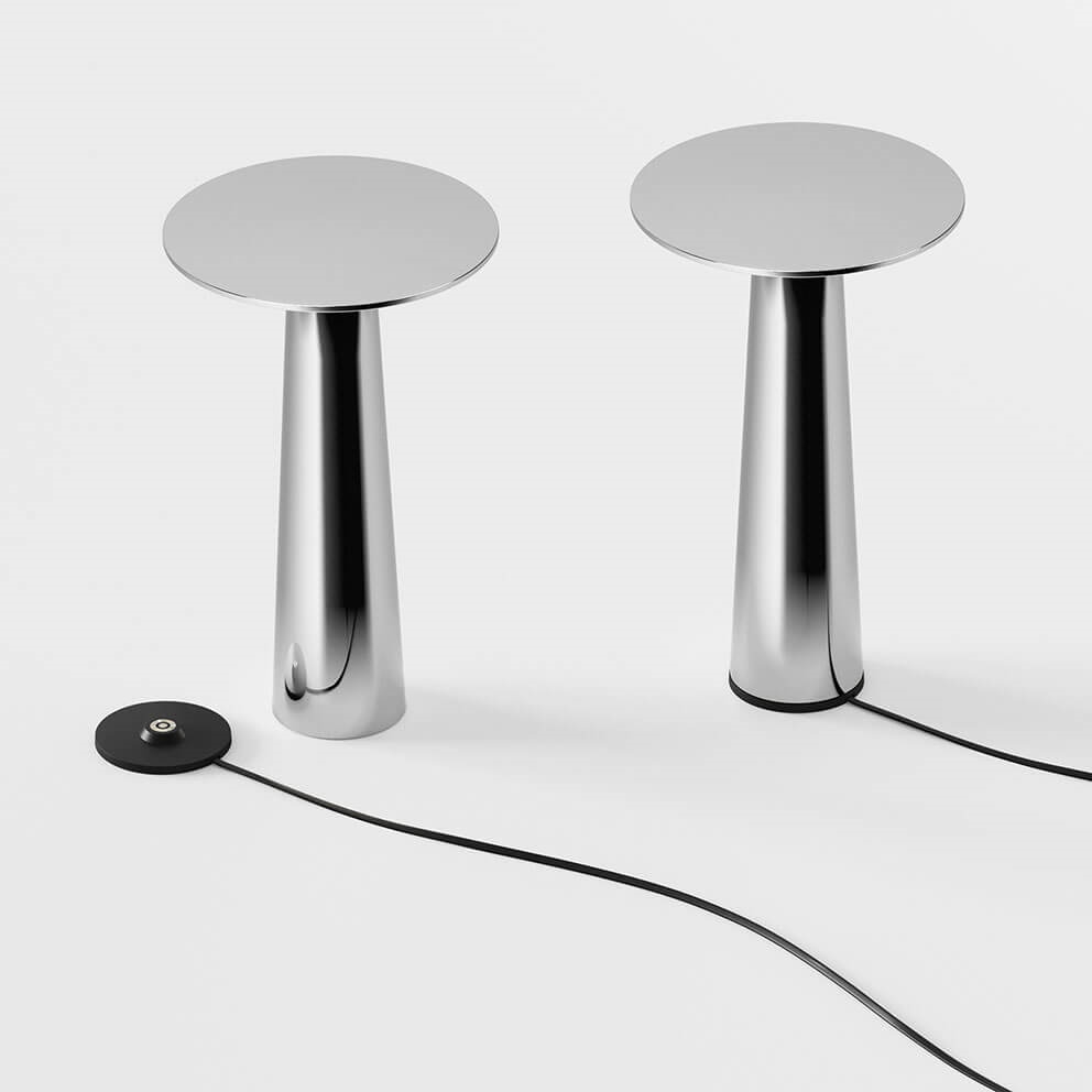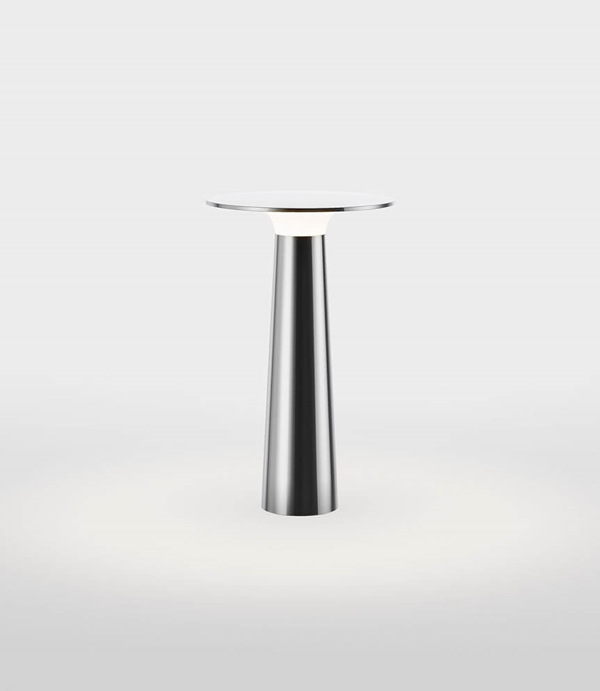 IP44.de Lix Akkuleuchte/Tischleuchte, Chrom - entworfen von Klaus Nolting