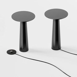 IP44.de Lix Akku-Leuchte/Tischleuchte, dark chrom - entworfen von Klaus Nolting