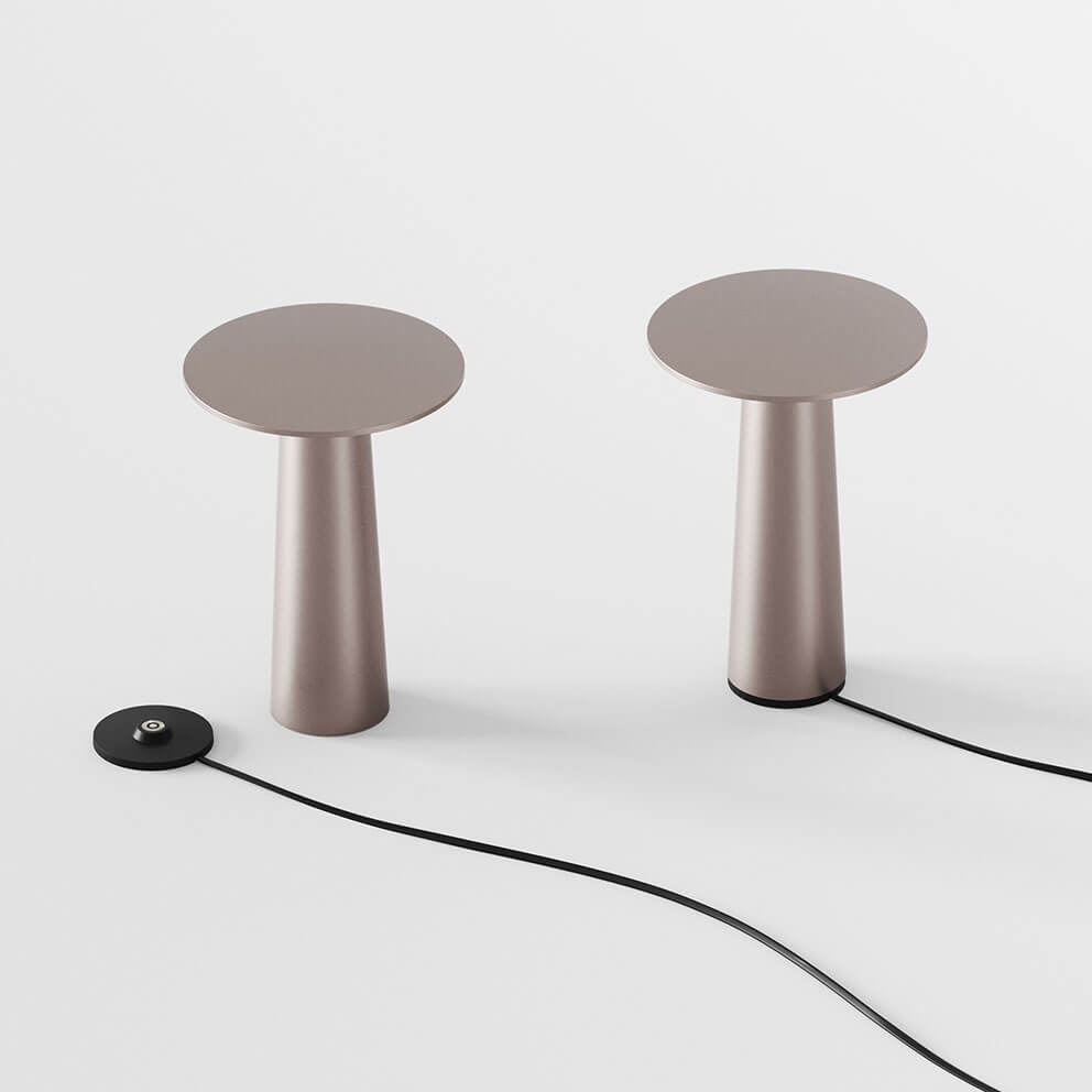 Die Batterielampe Lix mini mit einer Oberfläche in hellem Bronze ist leicht mitzunehmen und kann mit einer integrierten, dimmbaren LED-Lichtquelle an jede Stimmung angepasst werden, von warmweiß bei 2700K bis zum gemütlichen Kerzenschein bei 1800K. Die tragbare Tischlampe kann je nach gewählter Dimmung zwischen 5 und 48 Stunden leuchten, bevor sie auf die mitgelieferte Ladestation gestellt und wieder aufgeladen werden muss.
