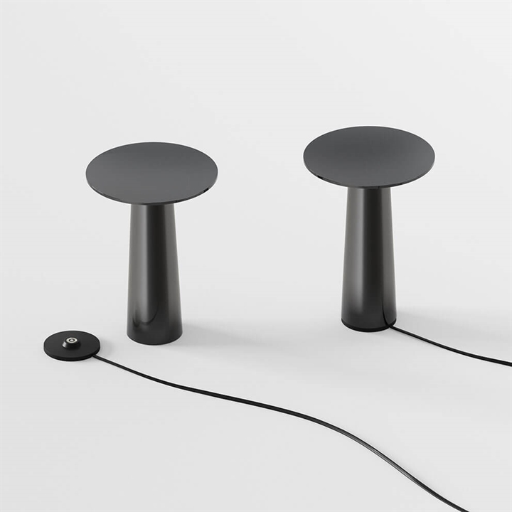 IP44.de Lix mini Batterielampe/Tischlampe, dark chrom - entworfen von Klaus Nolting
