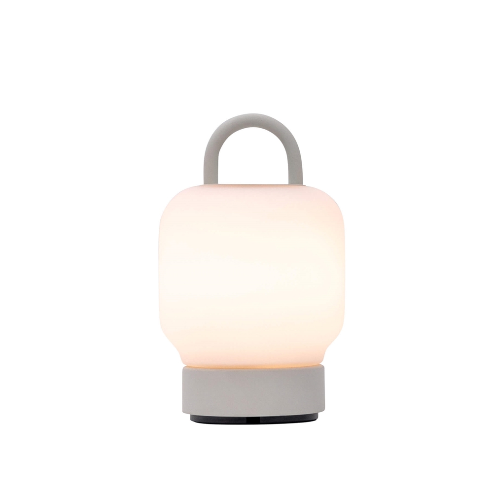 Die Tischlampe Loome ist eine wiederaufladbare Laterne mit einem eleganten Tragegriff, der es einfach macht, sie mitzunehmen. Die stilvolle Batterielampe kann auf dem Tisch, im Regal oder auf der Fensterbank platziert werden und bietet ein gemütliches, dimmbares Licht, sodass Sie die Helligkeit selbst bestimmen können. Sie kann auch draußen verwendet werden, wenn sie nach Gebrauch wieder hereingeholt wird. Die Batterielampe kann mit der mitgelieferten USB-Ladestation in vier Stunden zu 100 Prozent aufgeladen werden. Voll aufgeladen kann sie 11 Stunden bei voller Leistung, 20 Stunden bei halber Leistung oder 32 Stunden bei 20 Prozent leuchten.