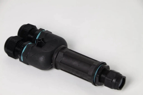 Bei der Montage von Außenleuchten kann dieser Loop-in - Loop-out Connector verwendet werden, um beispielsweise mehrere Matita Round Pollerleuchten mit zuverlässigen Verbindungen zu verbinden, die vor Wasser und Staub geschützt sind.