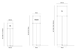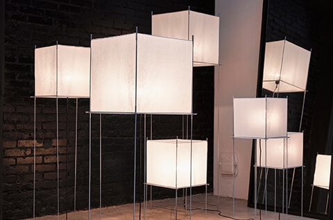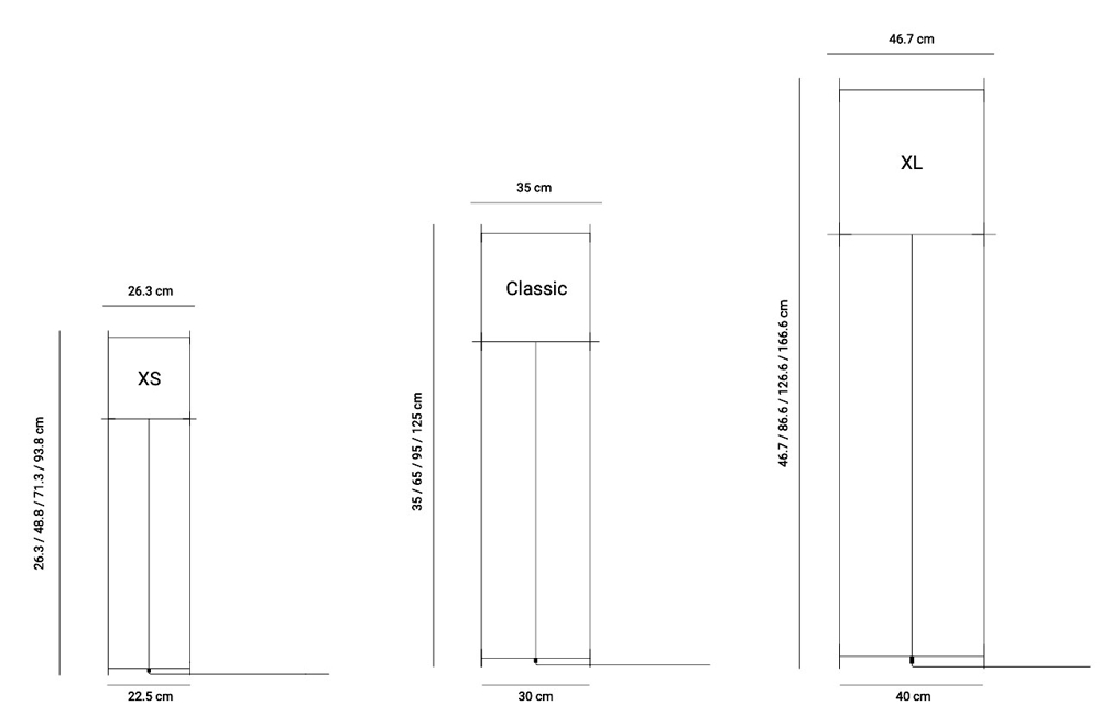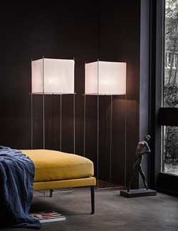 Lotek ist als Stehleuchte in XS, classic und XL mit schwarzem oder Stahlrahmen erhältlich.