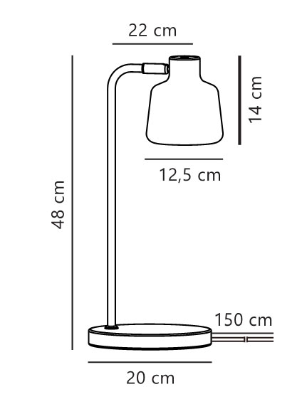 Maße: H48 x D22 cm, Schirm: Ø12,5 x H14 cm, Fuß: Ø12 cm