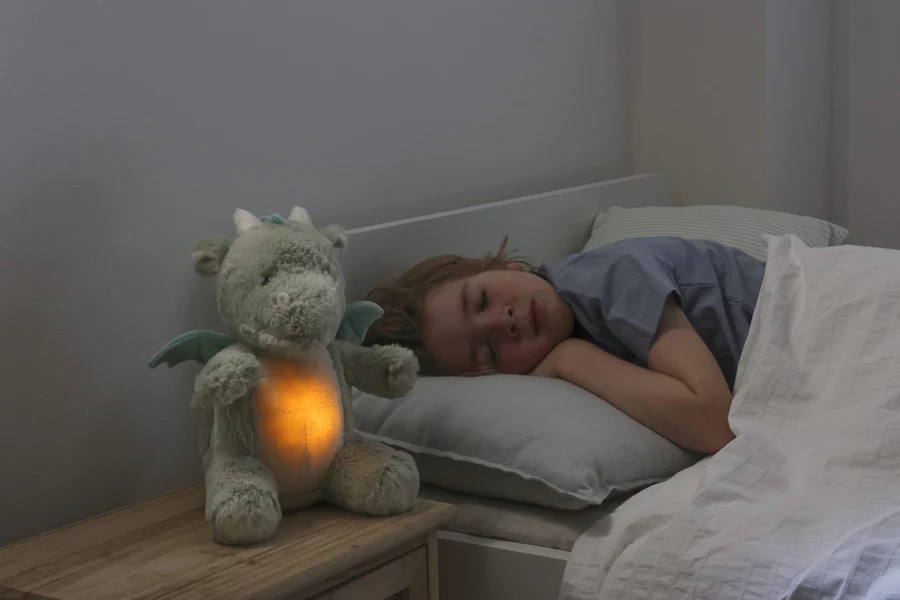 Love Light Buddies bieten Klang-, Berührungs- und visuelle Elemente, die beruhigend auf Babys wirken und ihnen helfen, einzuschlafen und die ganze Nacht friedlich zu schlafen. Die niedlichen leuchtenden Kuscheltiere haben 4 Melodien sowie 4 entspannende Klänge wie Herzschlag, Regen, sanfte Windgeräusche oder ein angenehmes Rauschen. Sie schalten sich nach 30 Minuten automatisch ab, sodass das Kind sanft einschlafen kann und gleichzeitig in einem ruhigen und dunklen Raum die Nacht durchschlafen kann.