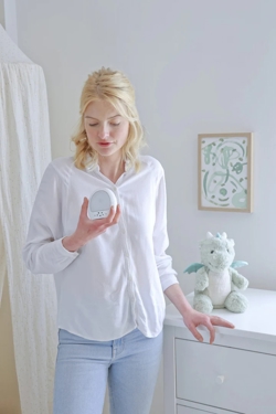 Das Besondere an Love Light ist, dass sie eine Aufnahmefunktion haben, sodass Eltern eine liebe Nachricht hinterlassen oder das Lieblingswiegenlied ihres Kindes singen können. Darüber hinaus verfügt die Lampe über einen Shake & Play-Bewegungssensor, der bei einer sanften Bewegung das Wiegenlied oder die aufgenommene Nachricht der Eltern abspielen kann.