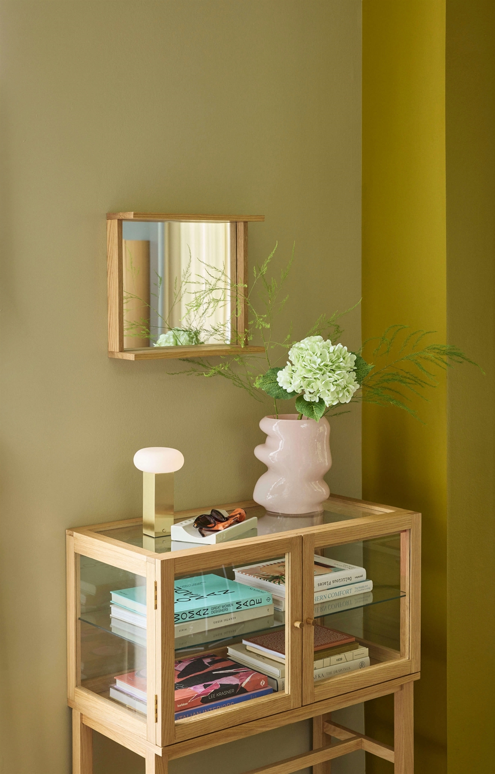 Das Design ist schlicht und zeitlos, mit einem abgerundeten Schirm und einem Sockel mit einer etwas kantigeren Form, und fügt sich ganz natürlich sowohl in moderne als auch in klassische Einrichtungen ein. Der Schirm aus Opalglas streut das Licht weich und gleichmäßig im Raum und schafft eine einladende Atmosphäre ohne harte Schatten.
