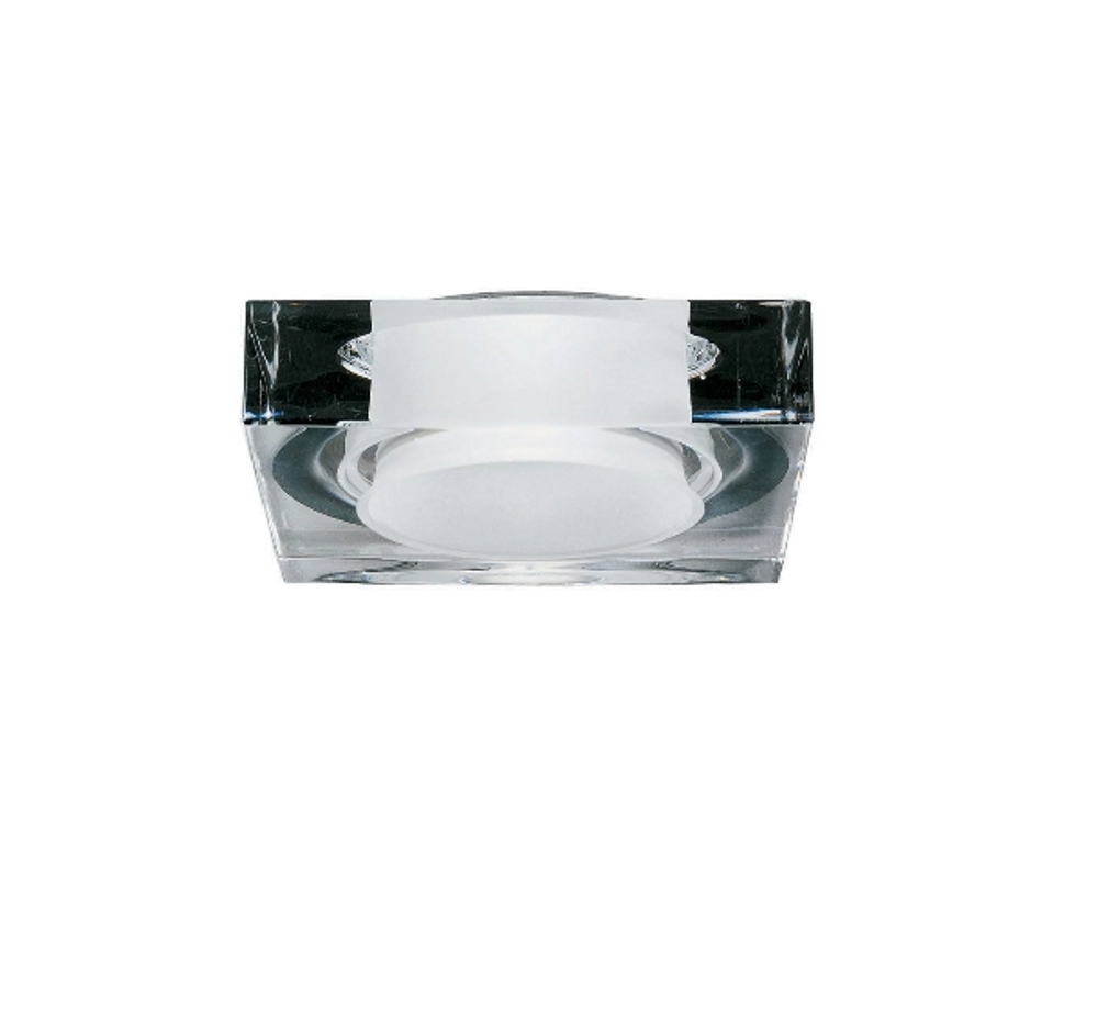 Der Lui Einbauspot bietet ein äußerst angenehmes und schönes Licht und ist aus gepresstem klarem Kristall gefertigt und hat eine Fassung aus poliertem Edelstahl.