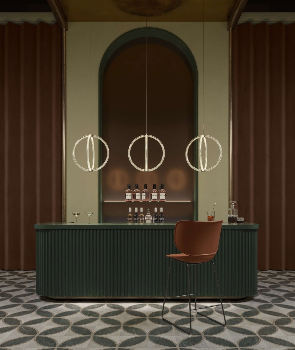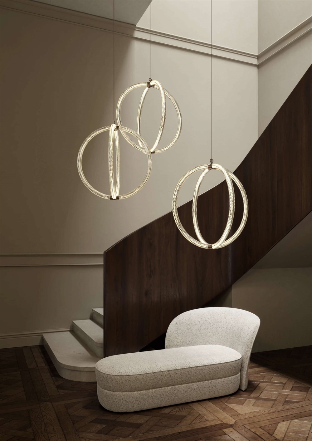 Luminora ist inspiriert von Murano-Glas und der mathematischen Eleganz des Goldenen Schnitts. Die Lampe vereint Einfachheit und Komplexität und passt gut in viele Einrichtungsstile. Verwenden Sie die Pendelleuchte beispielsweise als Beleuchtung über dem Esstisch, als skulpturales Element im Wohnzimmer oder als einladendes Licht im Eingangsbereich.