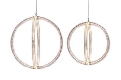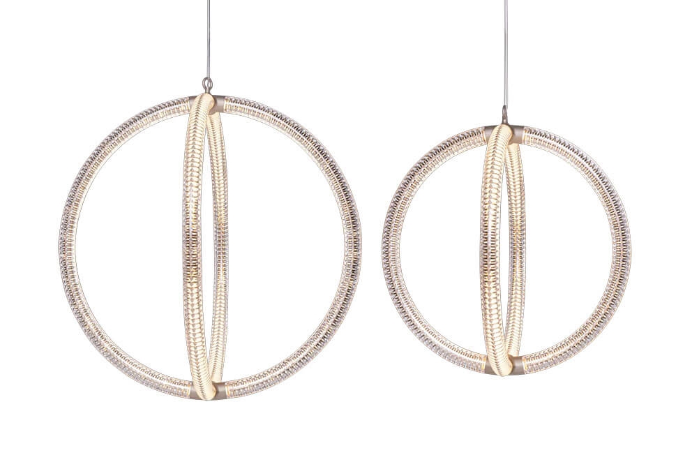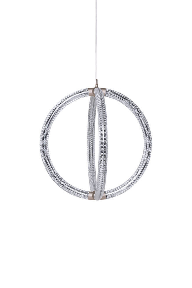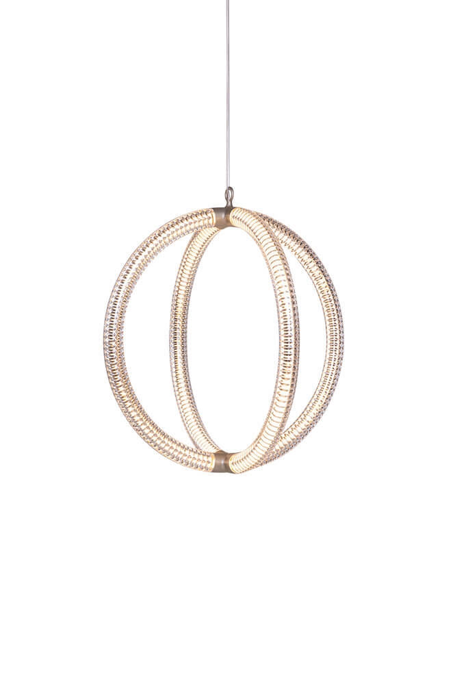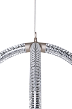 Luminora Light hat ein schwebendes Design, bei dem die Struktur der Pendelleuchte auch die LED-Lichtquellen der Lampe sind. Die flexiblen transparenten LED-Röhren aus Polycarbonat haben ein V-förmiges Diamantmuster mit einem faszinierenden optischen Effekt, der dazu beiträgt, die Lampe zu einer leuchtenden Skulptur zu machen. Die Verbindungen oben und unten sind aus Aluminium in der Farbe Perl.
