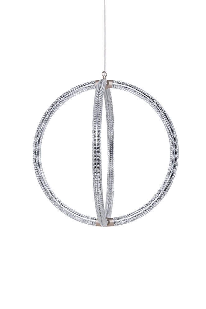 Luminora Light hat ein schwebendes Design, bei dem die Struktur der Pendelleuchte auch die LED-Lichtquellen der Lampe sind. Die flexiblen transparenten LED-Röhren aus Polycarbonat haben ein V-förmiges Diamantmuster mit einem faszinierenden optischen Effekt, der dazu beiträgt, die Lampe zu einer leuchtenden Skulptur zu machen. Die Verbindungen oben und unten sind aus Aluminium in der Farbe Pearl.