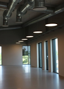 Die Luna-Serie hat ein einfaches, aber modernes Design aus Aluminium und mit einem weißen PVC-Schirm.