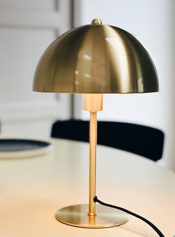 Die Lyon Tischlampe aus der Serie French Collection hat ein zeitloses Design, das einen klassischen Ausdruck mit modernen Materialien kombiniert. Die Tischlampe aus gebürstetem Messing passt in viele Einrichtungsstile und kann sowohl als Arbeitslicht auf dem Schreibtisch als auch als gemütliches Licht im Wohnzimmer verwendet werden.